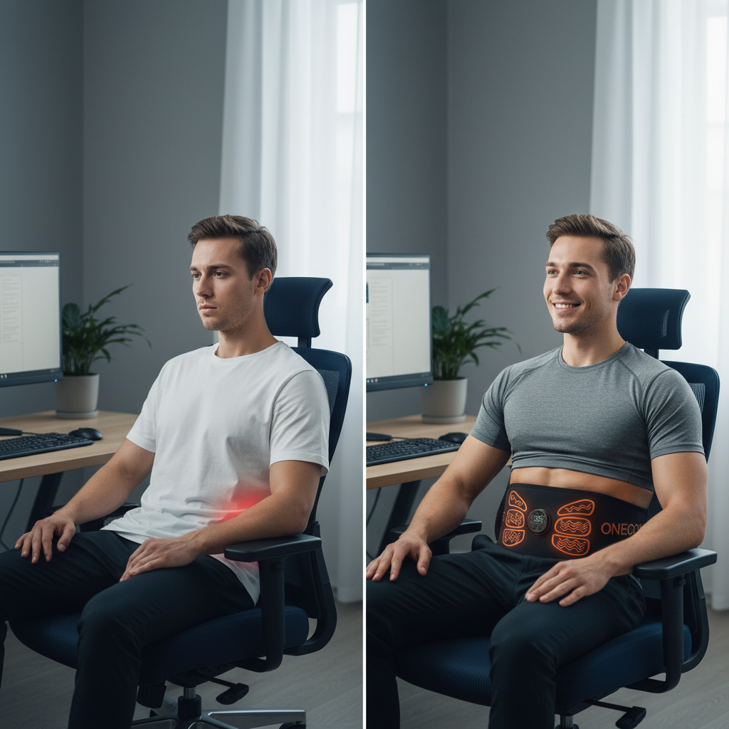 Vous passez 8h assis ? Onecore transforme votre temps de travail en séance de gainage invisible. Soulagez votre dos tout en restant productif. -